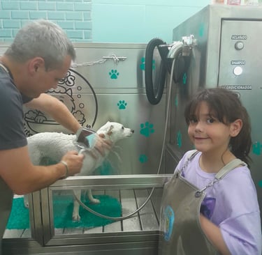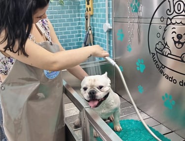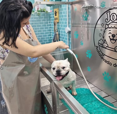El baño es autoservicio, por lo que el tutor es responsable del cuidado y control del perro durante toda la visita.