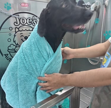 Si no queres andar con toallas y tener que lavarlas luego, en Joe´s tenemos alquiler de toallas y toallones dependiendo del tamaño de tu peludo.